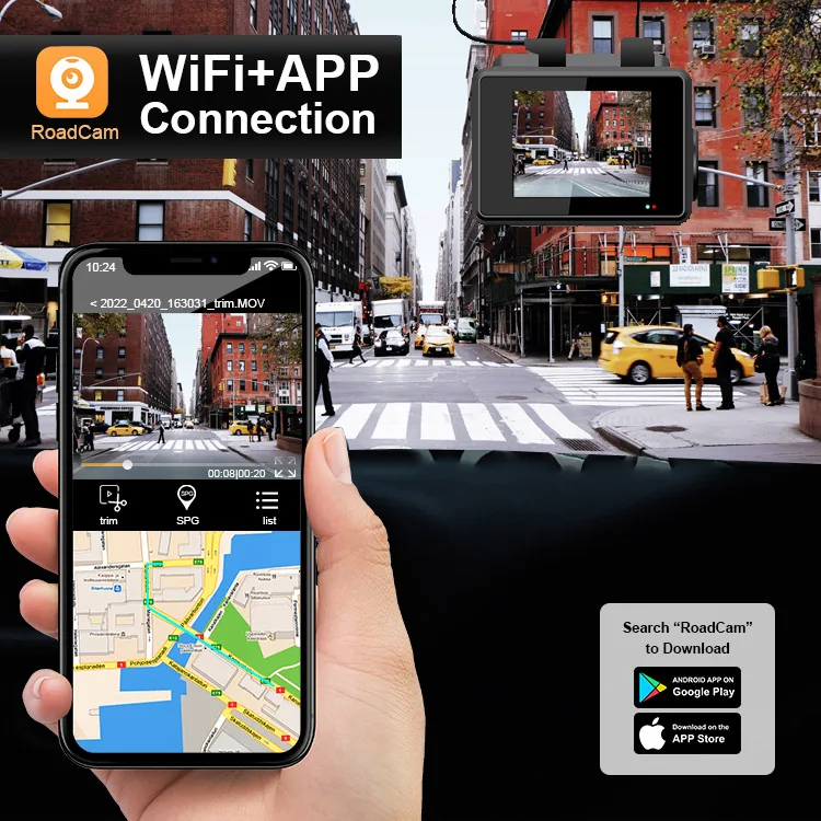 With WDR night vision, your dash cam delivers superior clarity and vivid colors even in low-light conditions. Built-in WiFi allows seamless control and footage access via iOS and Android devices, making it easy to review and share recordings. Optional GPS support provides accurate location tracking for added security and evidence.